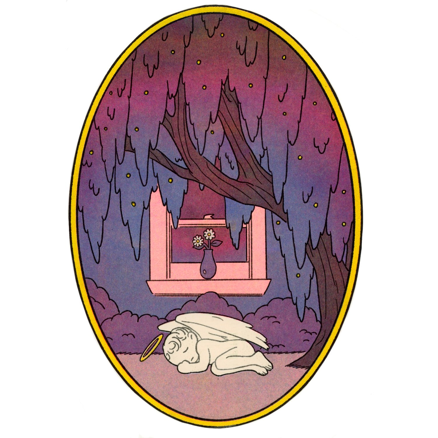 7 x 10 inch oval hand-cut, 4 color Riso print, comes signed.
